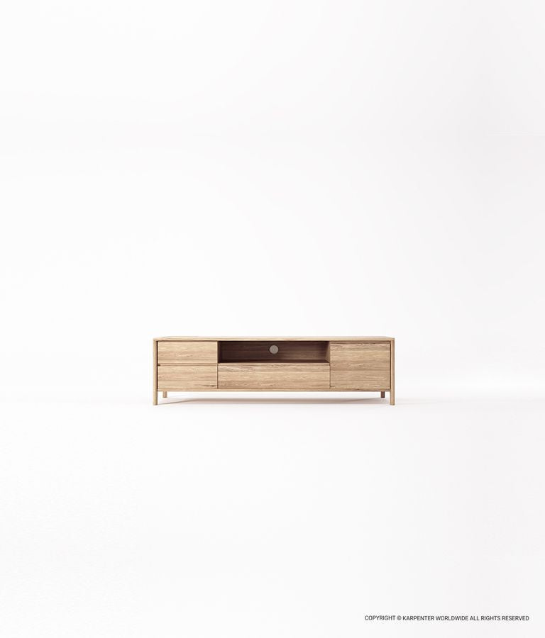 Bebaskan gaya personal Anda dengan kabinet media yang penuh daya tarik ini, menampilkan dua laci dan ruang memadai untuk kebutuhan ruang tamu Anda.