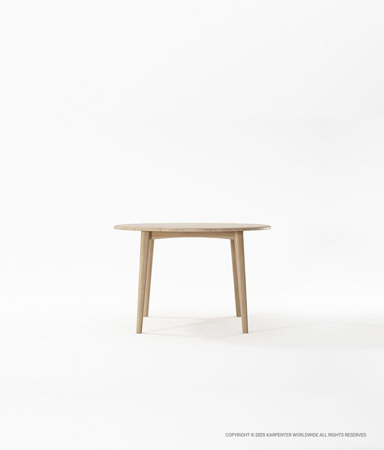 Meja makan bundar yang menjadi pusat ruang makan modern dengan penampilan estetisnya baik dari desain maupun material.