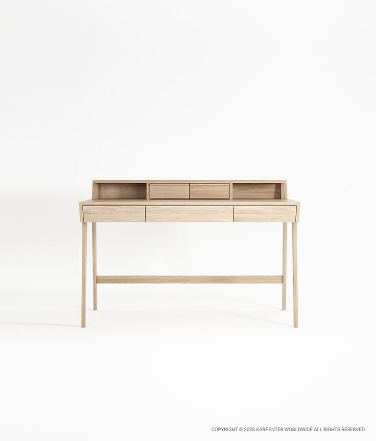 Menggabungkan desain ramping dengan laci dan ceruk fungsional, meja tulis ini menawarkan ruang kerja khusus untuk individu yang terorganisir.