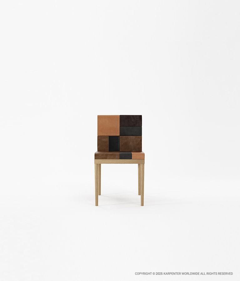 Palet detail kulit halus dan garis-garis sederhana pada Katchwork Chair menciptakan desain yang cantik dan serbaguna.