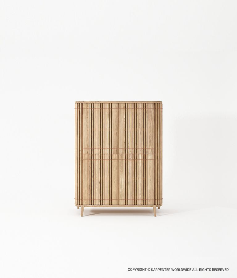 Lemari kontemporer yang dibuat dengan indah, menawarkan penyimpanan multifungsi untuk barang-barang berharga Anda.