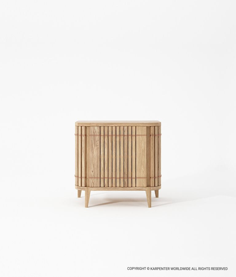 Meja samping Koppar berbahan kayu solid, melengkapi koleksi tempat tidur dengan sempurna, menghadirkan kemurnian alam.