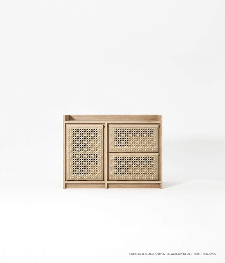 Bergaya ramping dan minimalis, rak dinding ini menampilkan rotan yang merepresentasikan daya tarik abadi gaya vintage Jepang.