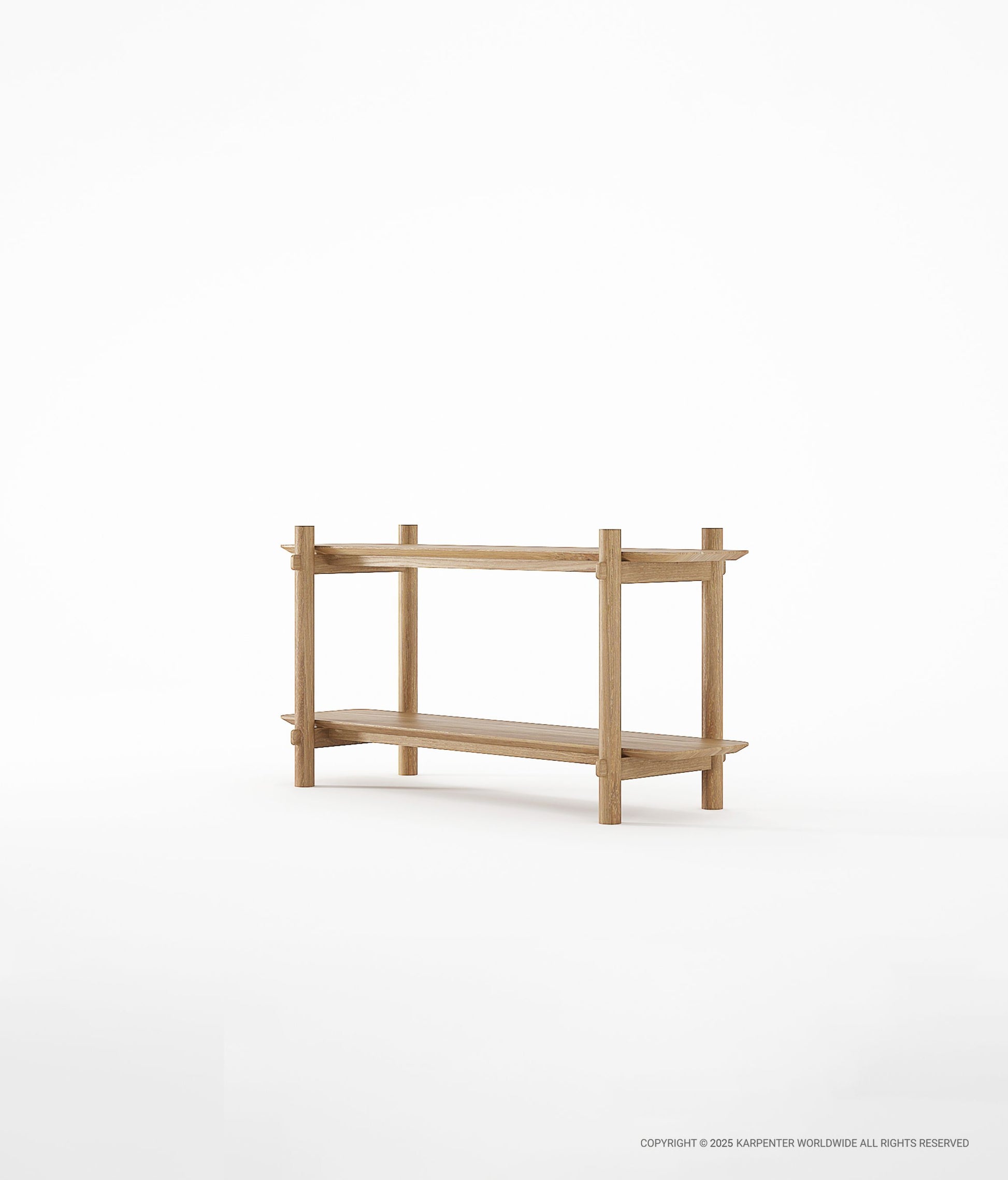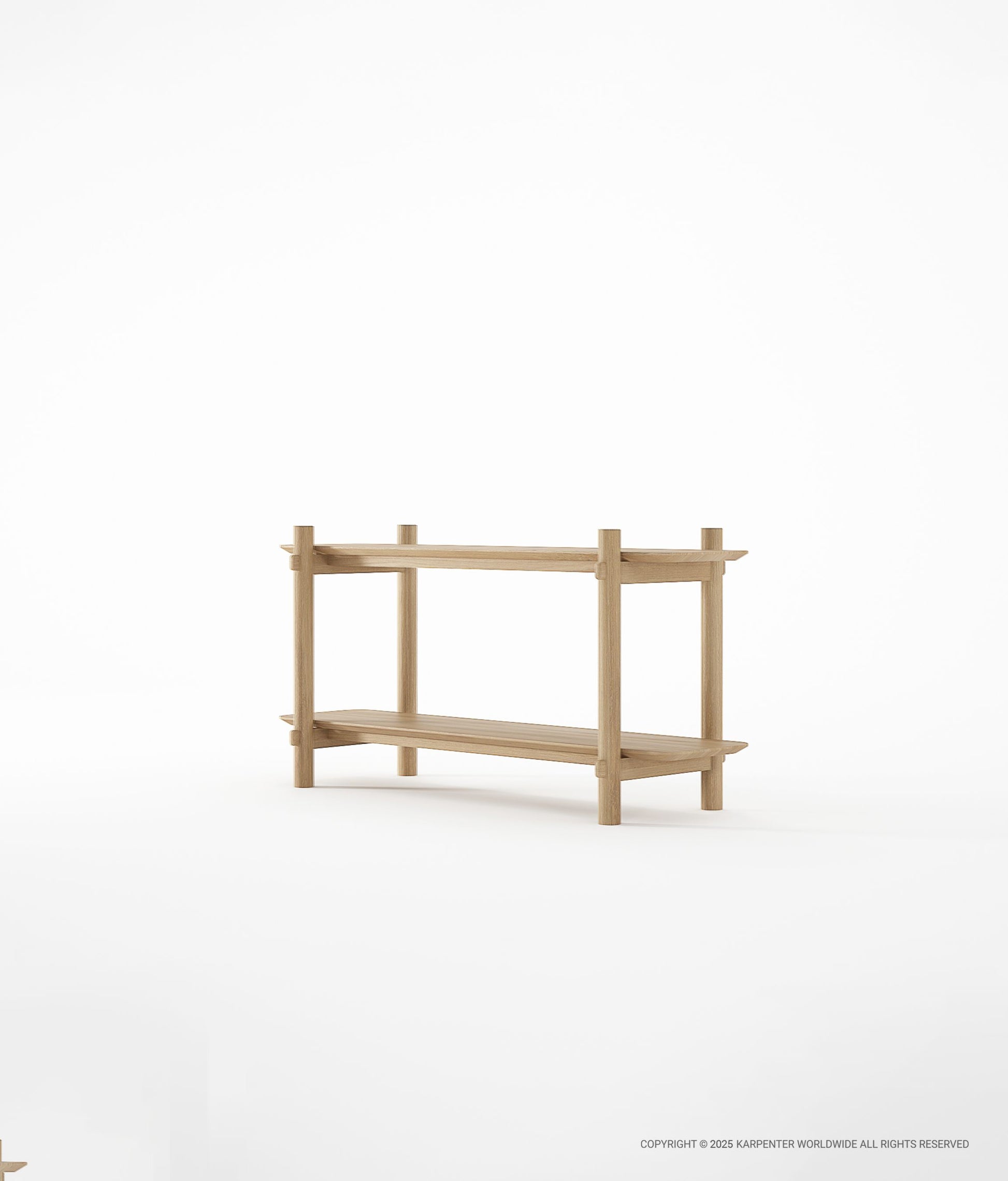 A rack that embodies craftsmanship, blending visual rhythm and tactile richness through beveled legs and soft edges. It offers quiet structure—mounting to the wall or defining space with subtle presence.
