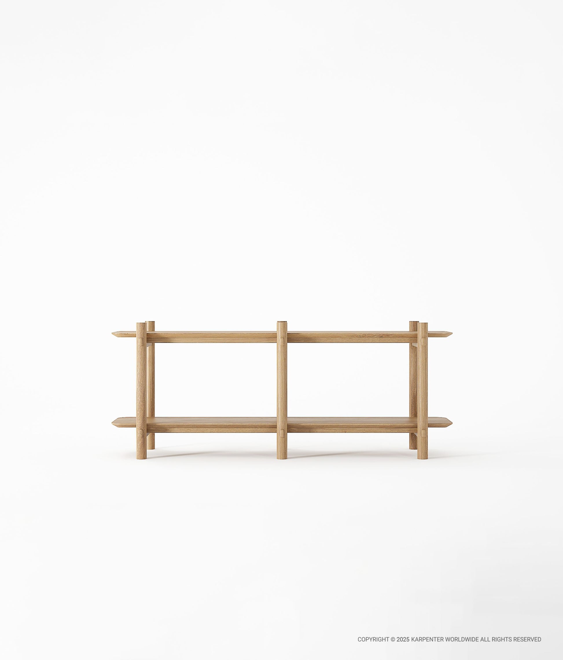 A rack that embodies craftsmanship, blending visual rhythm and tactile richness through beveled legs and soft edges. It offers quiet structure—mounting to the wall or defining space with subtle presence.