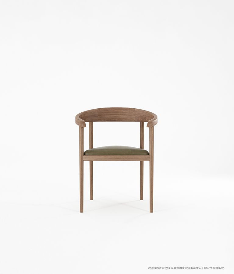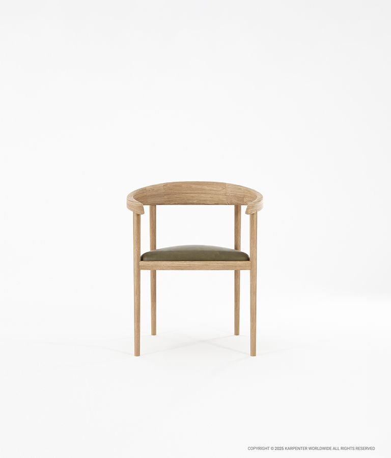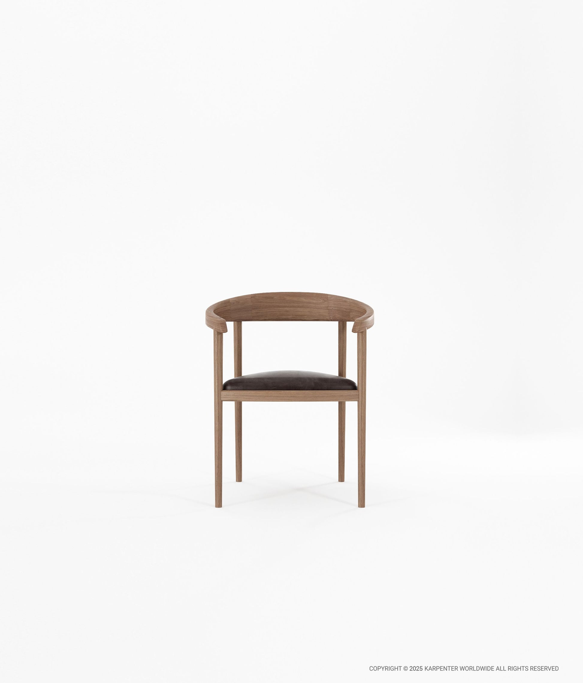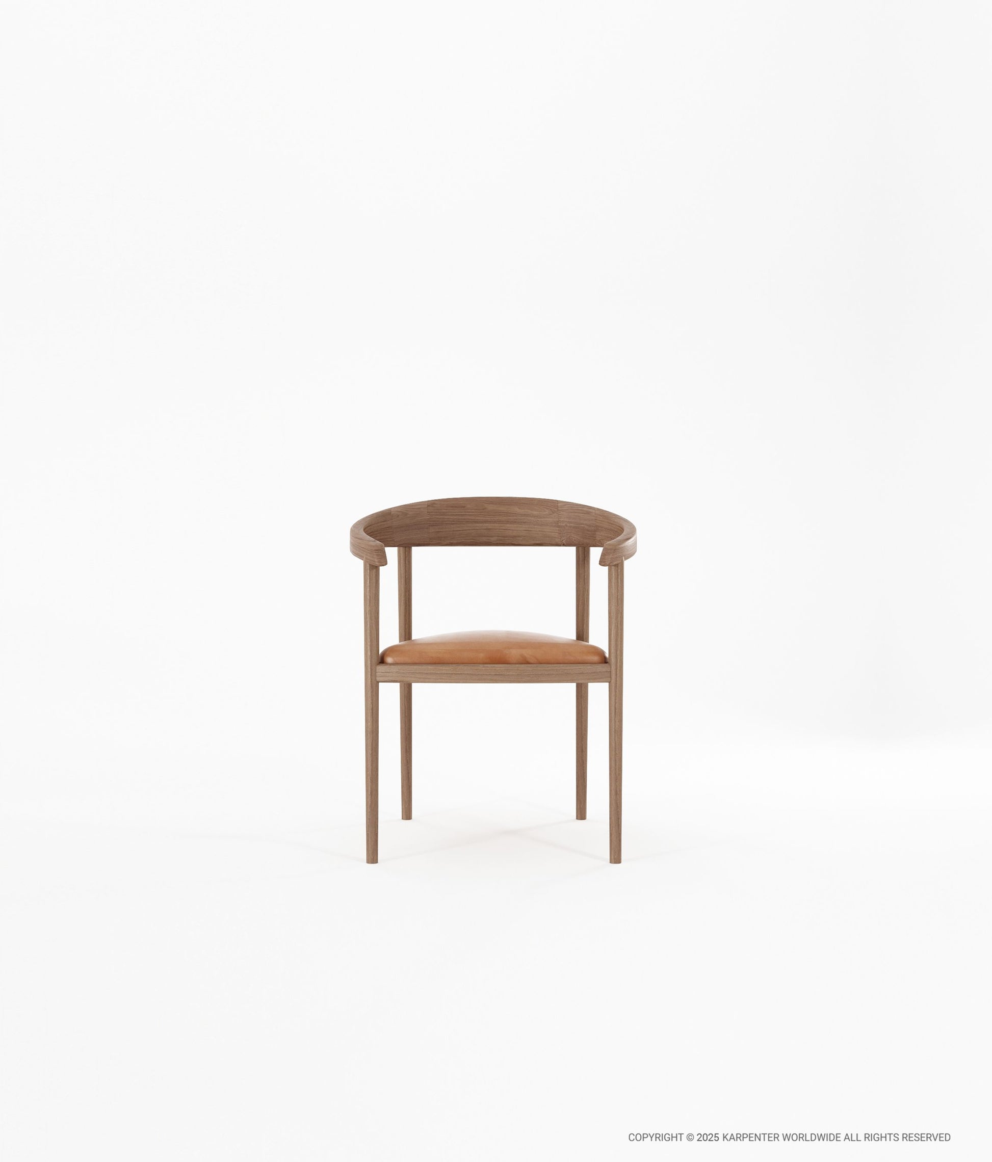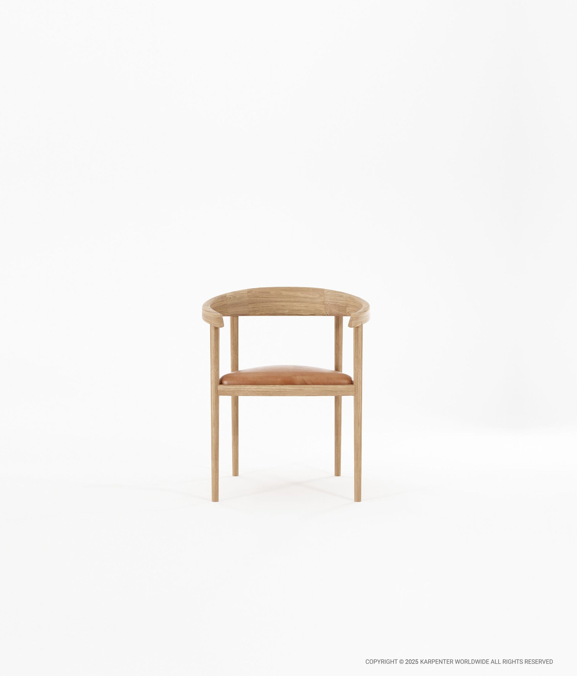 A minimalist armchair of subtle elegance that features a cozy leather seat.