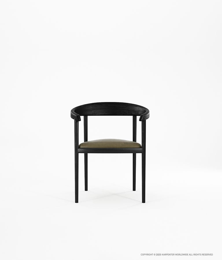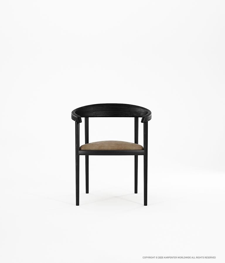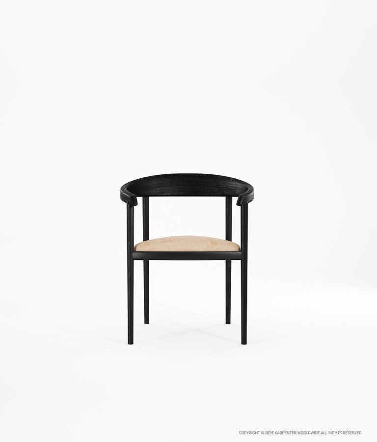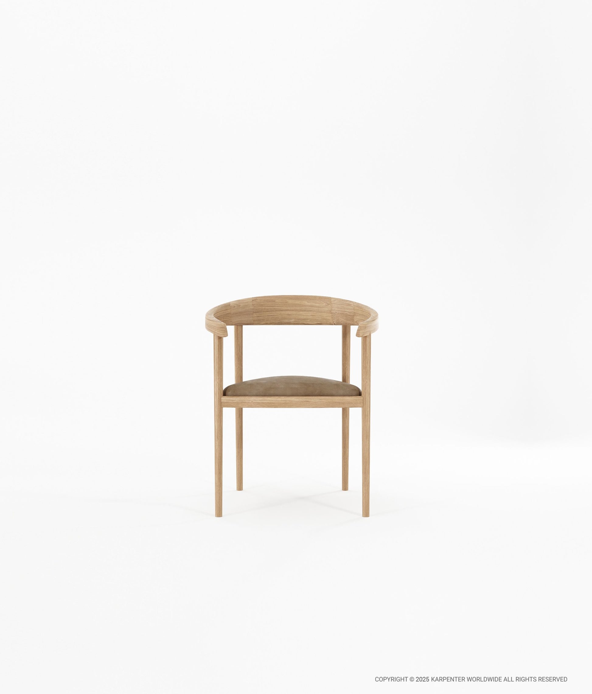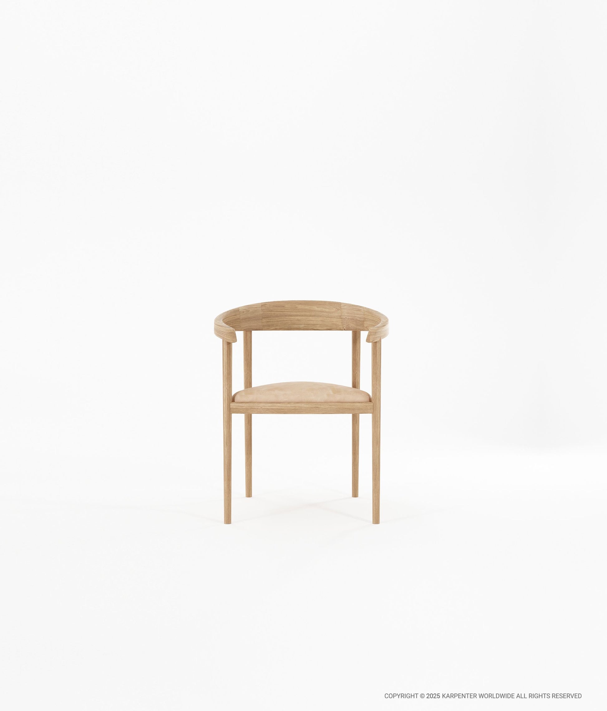 A minimalist armchair of subtle elegance that features a cozy leather seat.