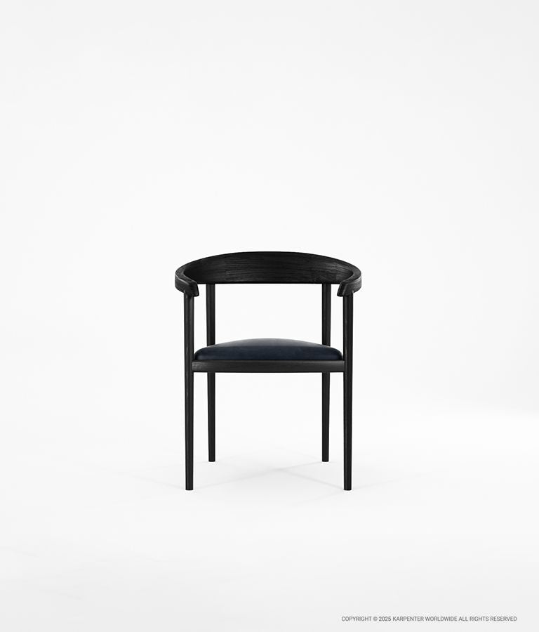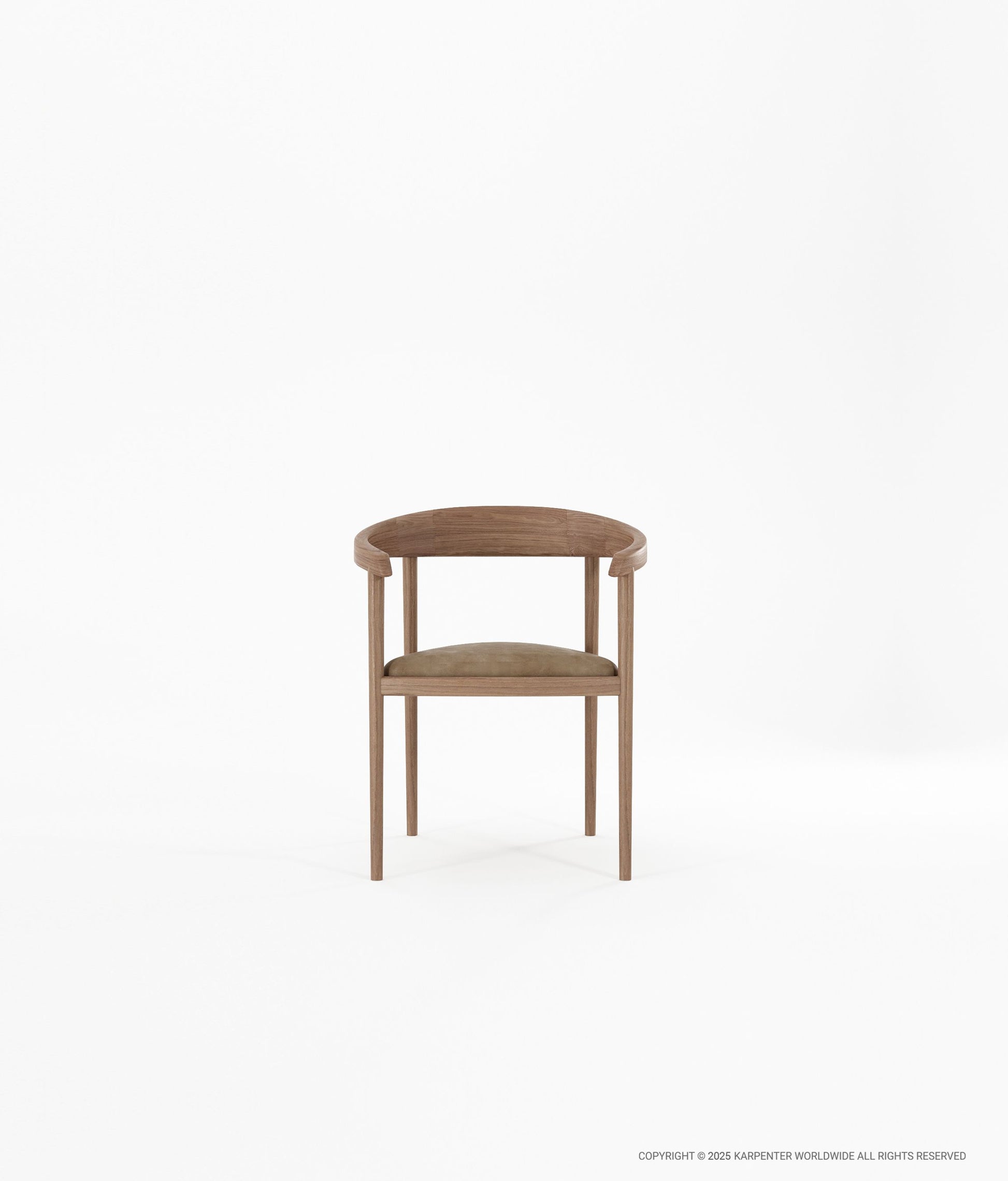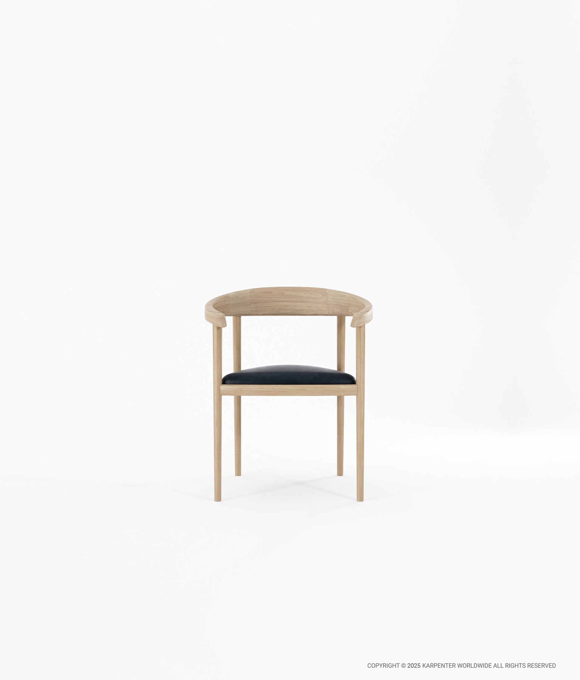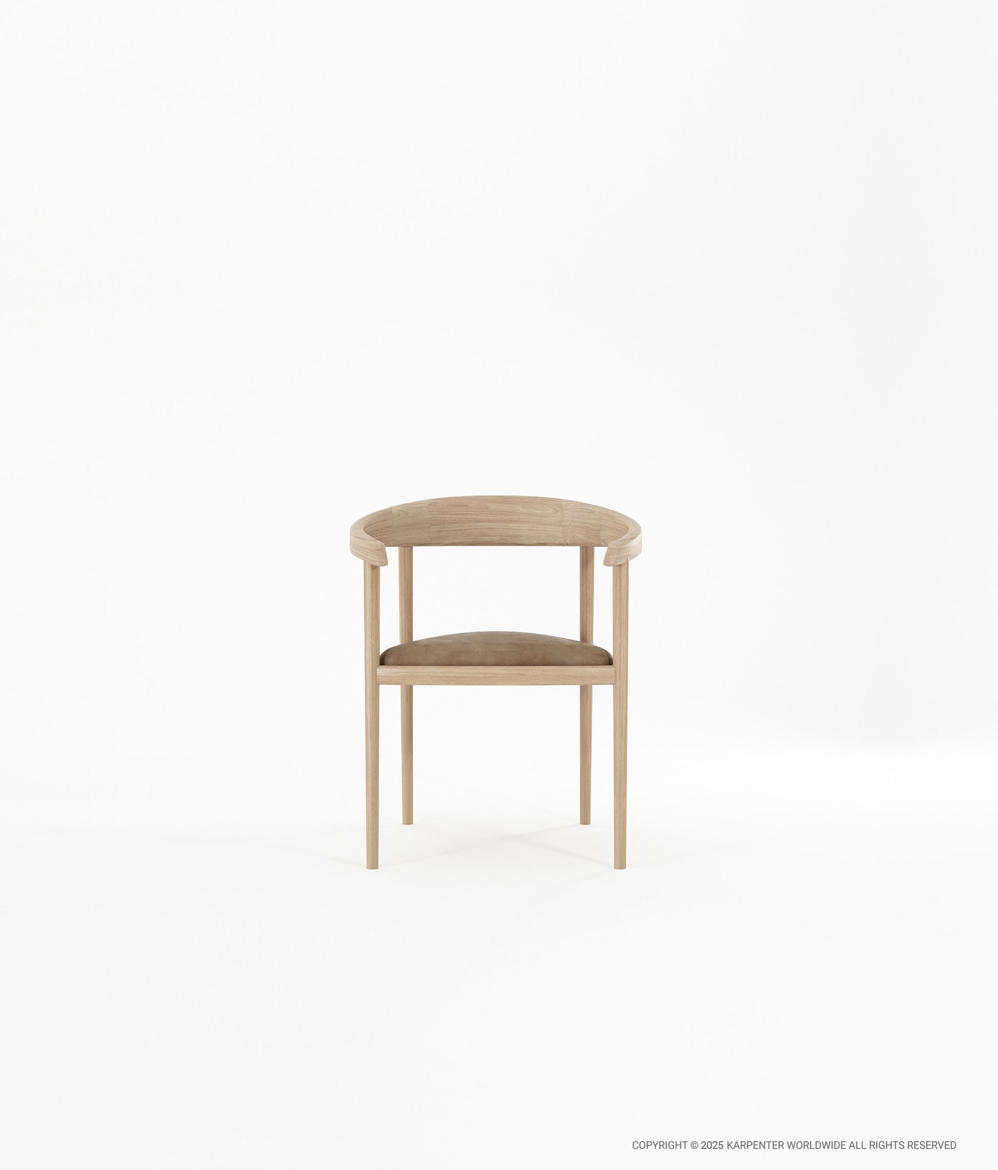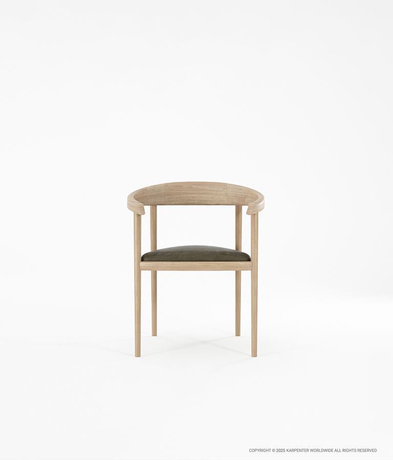 A minimalist armchair of subtle elegance that features a cozy leather seat.