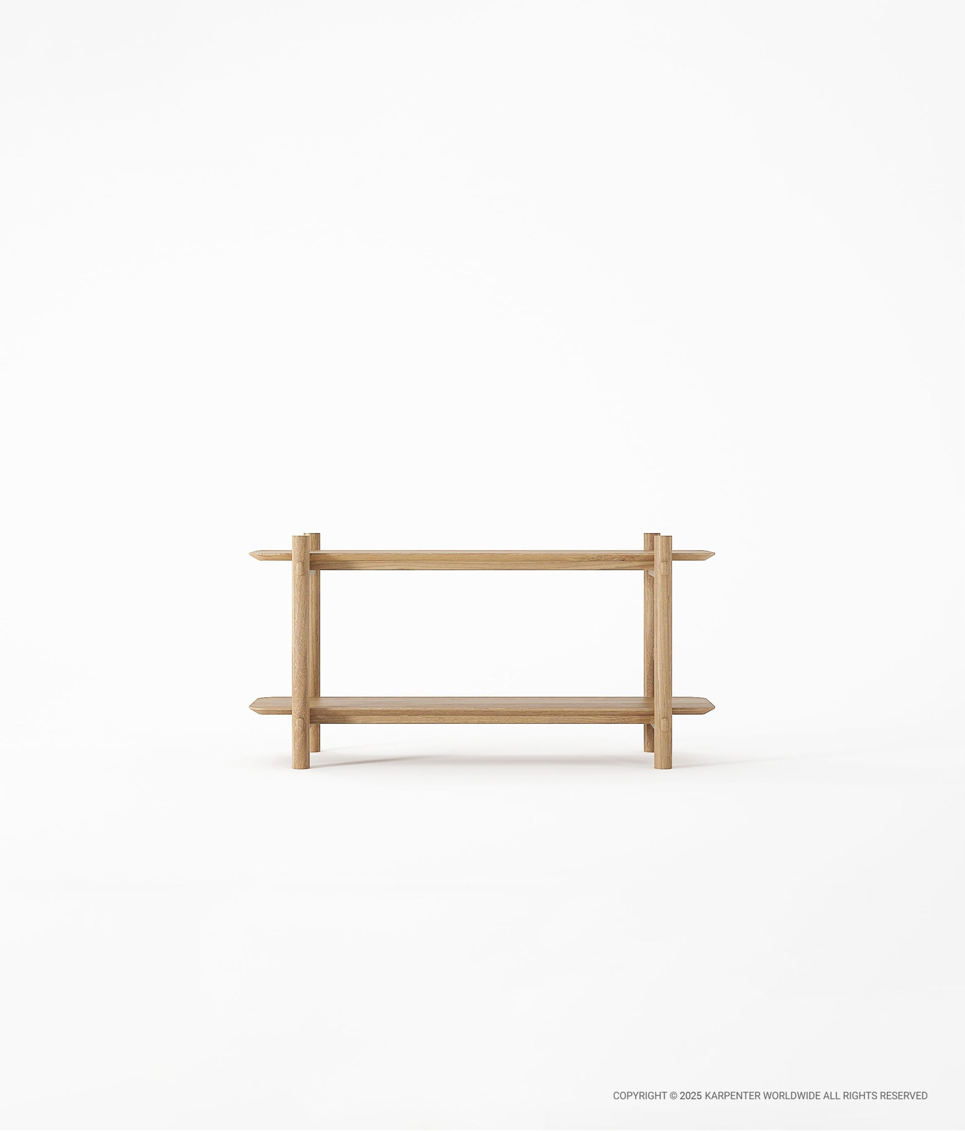 A rack that embodies craftsmanship, blending visual rhythm and tactile richness through beveled legs and soft edges. It offers quiet structure—mounting to the wall or defining space with subtle presence.