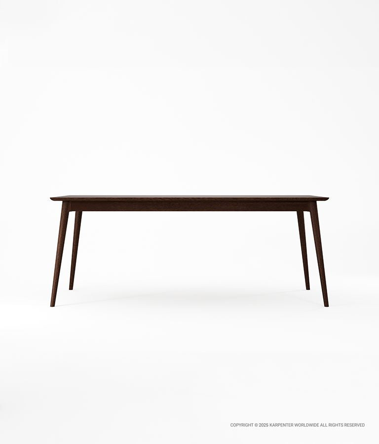 A minimalist rectangular dining table. The solid wood construction provides a natural touch, creating a warm and inviting atmosphere for your gathering.